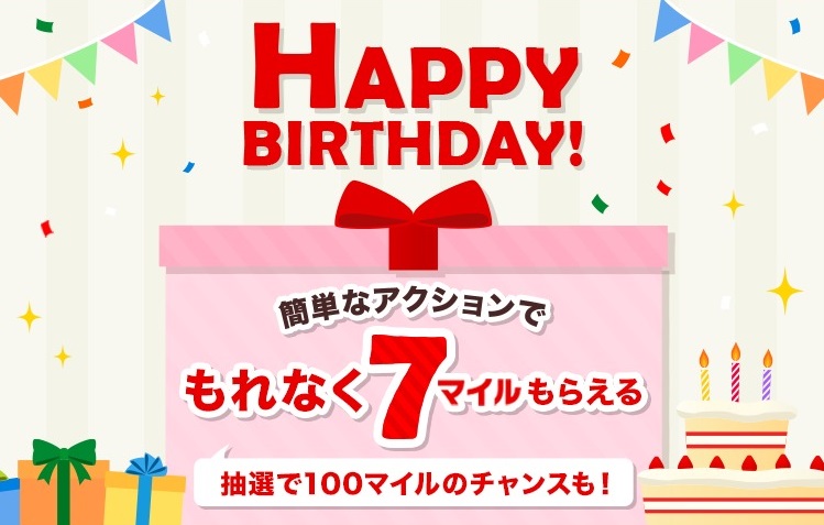 ※ バースデーボーナス7マイルは、セブンマイルプログラムのトップページを閲覧した翌日以降に付与されます。