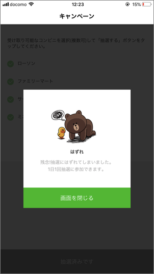 はずれてもキャンペーン期間中は1日1回抽選が出来るんです!