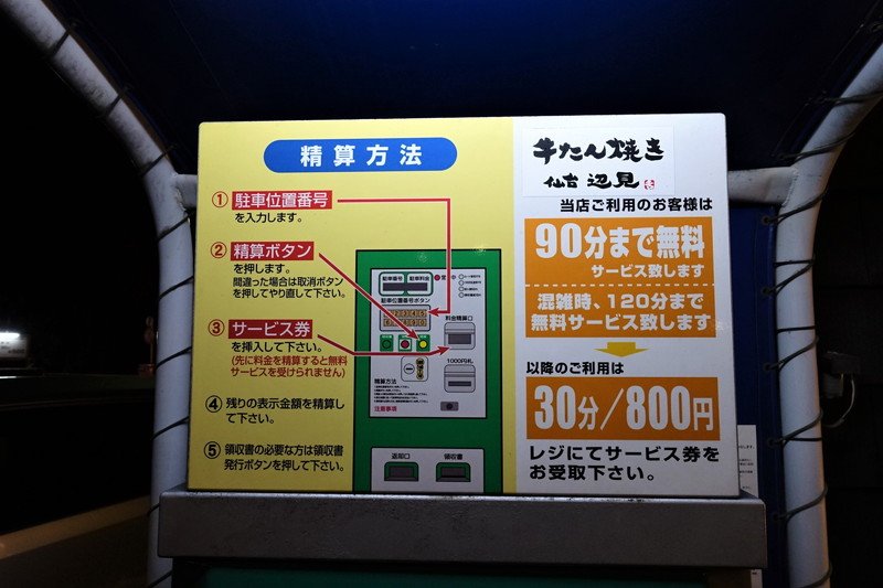 お店で食事をした場合は、通常は90分(混雑時は120分)まで駐車料金が無料です。
